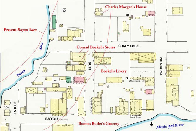 p. 13. Sanborn Map and Publishing Co., Limited 1898 Fire Insurance Map of Bayou Sara and St. Francisville. Library of Congress, Geography and Map Division.
