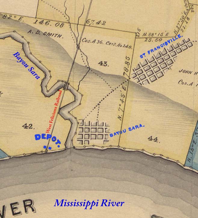 The terminus of the West Feliciana Railroad, finished in 1842, was located in Bayou Sara and boosted its economy. The town rapidly became a major shipping port for cotton from as far away as Mississippi and soon boasted a cotton press and warehouses. Horse dealing was also a prominent business with herds brought in for sale from Kentucky and other states.