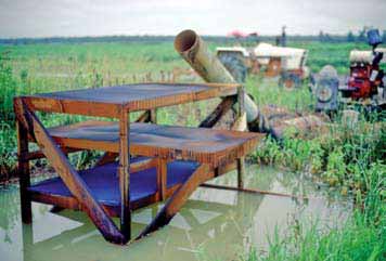 Figure 4.4. When ponds are extremely level, recirculation can be accomplished using commercially available