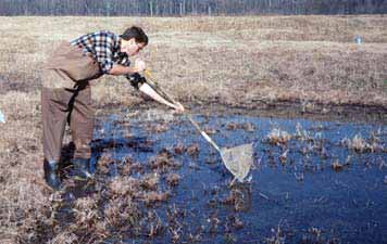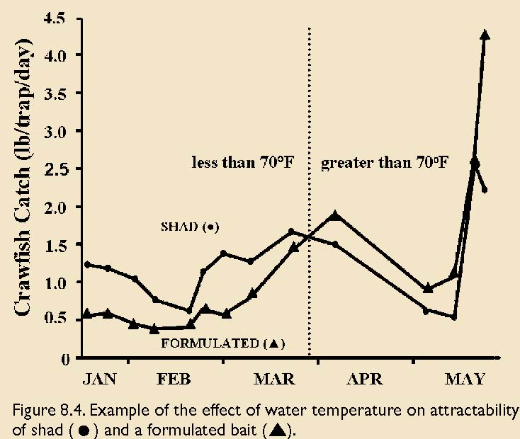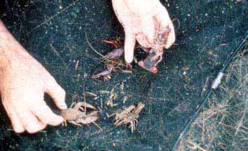 Although “natural recruitment” in crawfish farming has many advantages, a significant disadvantage is that crawfish producers have little means of accurately controlling or even determining population density and subsequent yield. Available sampling methods are crude and currently include dip net sweeps and use of “test” traps. These methods are highly variable and subject to many sources of bias or error. Producers generally do not have a good assessment of their populations until harvesting is well underway in late spring, after pond temperatures have increased substantially.