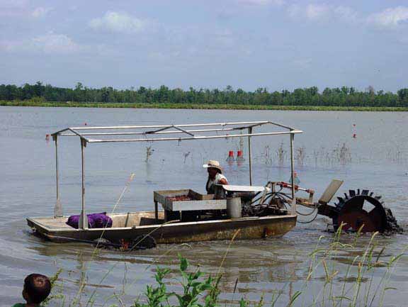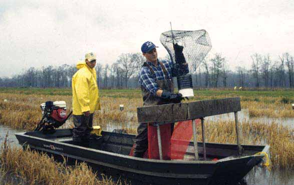 Initial research focused on how best to manage crawfish ponds to provide a productive habitat, including what type of vegetation to plant, when to plant it, when to flood the ponds, how many crawfish to stock, how to discourage natural predators such as insects and wild fish and other basic topics (Figure 1.7). As time went on and the industry continued to grow, research focused on solving more problems, such as improving trap designs, developing formulated baits that would not have to be refrigerated or frozen, managing the amount and quality of water used in producing crawfish, evaluating the possibility for genetic improvement of crawfish, looking at new ways to process crawfish, developing new products made with crawfish meat and many other topics.