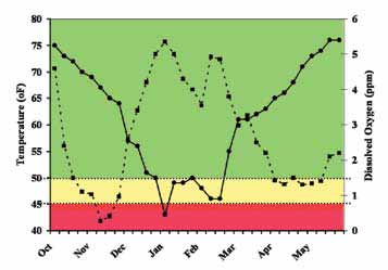 oxygen episodes, but less vegetation is submerged and oxygen demand