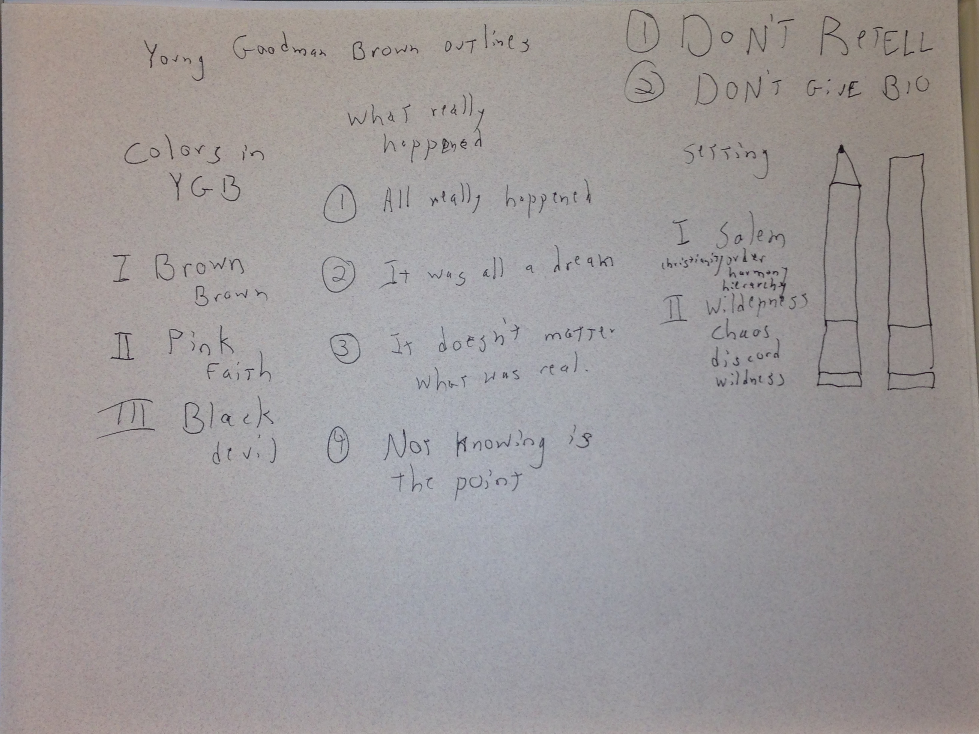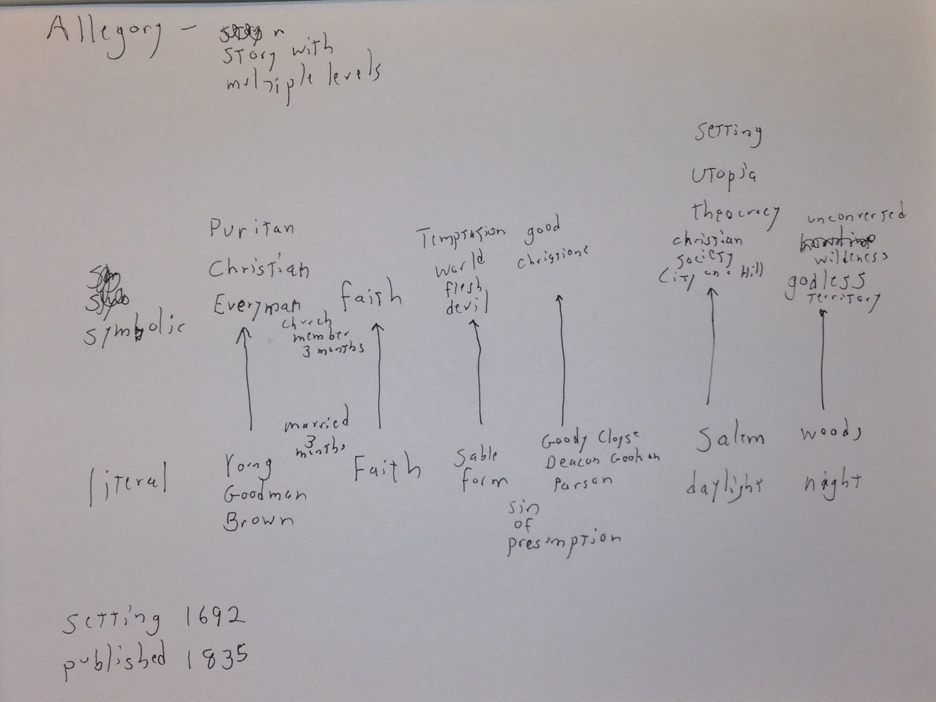 - As you read the story a second time, make a list of all the qualifying words that Hawthorne uses to suggest that the events described may or may not be actually happening--words like seem, appear, perhaps, etc. What does Hawthorne achieve through this word choice?