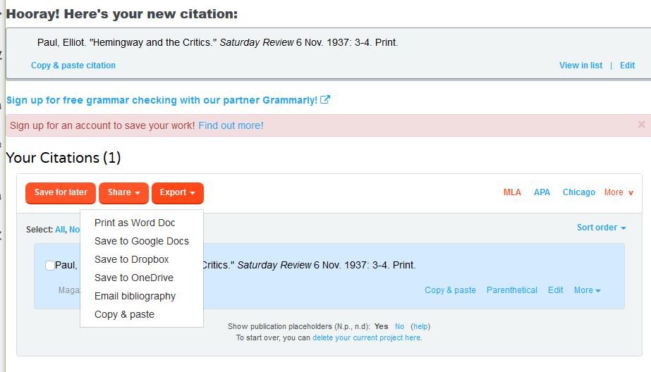 - Create your bibliography using Easybib.com