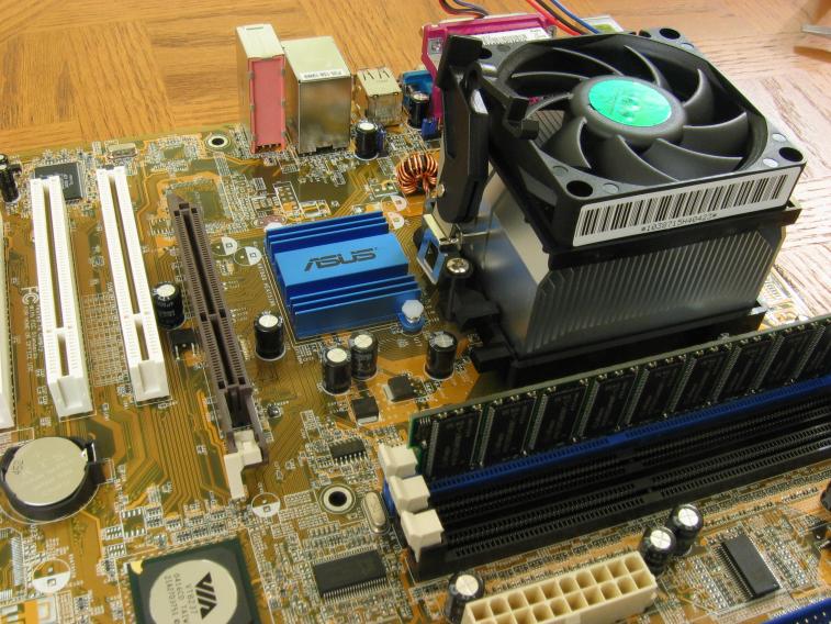 The processor, or CPU, is the brain of the computer. Like a brain, this is probably the most fragile part so be careful when handling it. AMD CPUs tend to be a bit more fragile than Intel CPUs because they still have pins rather than gold blocks on the bottom.