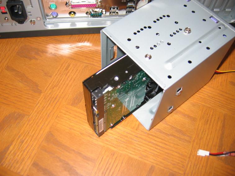 You will notice several screwholes on the side of your drive. Simply slip your drive into its bay and secure it using the accompanying screws. Securing it from one side is usually sufficient, but feel free to put them all in.