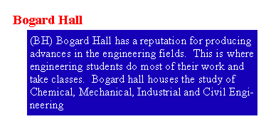 List of the Major Buildings on Campus