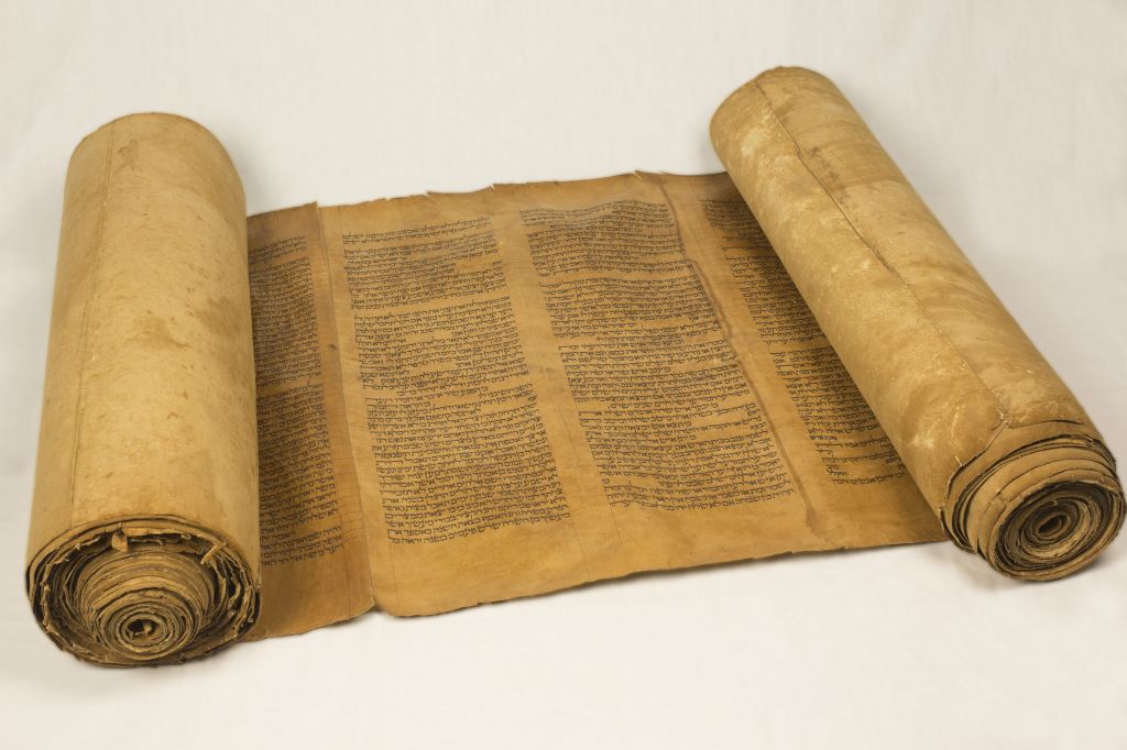 Torah scroll. It contains the first five books of the Bible, and is unpointed. That means there no vowel dots around the consonants.
