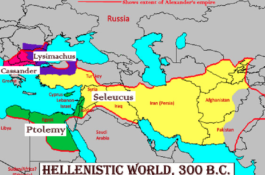 - 323 BC. Alexanders generals (Διάδοχοι) divide his empire.