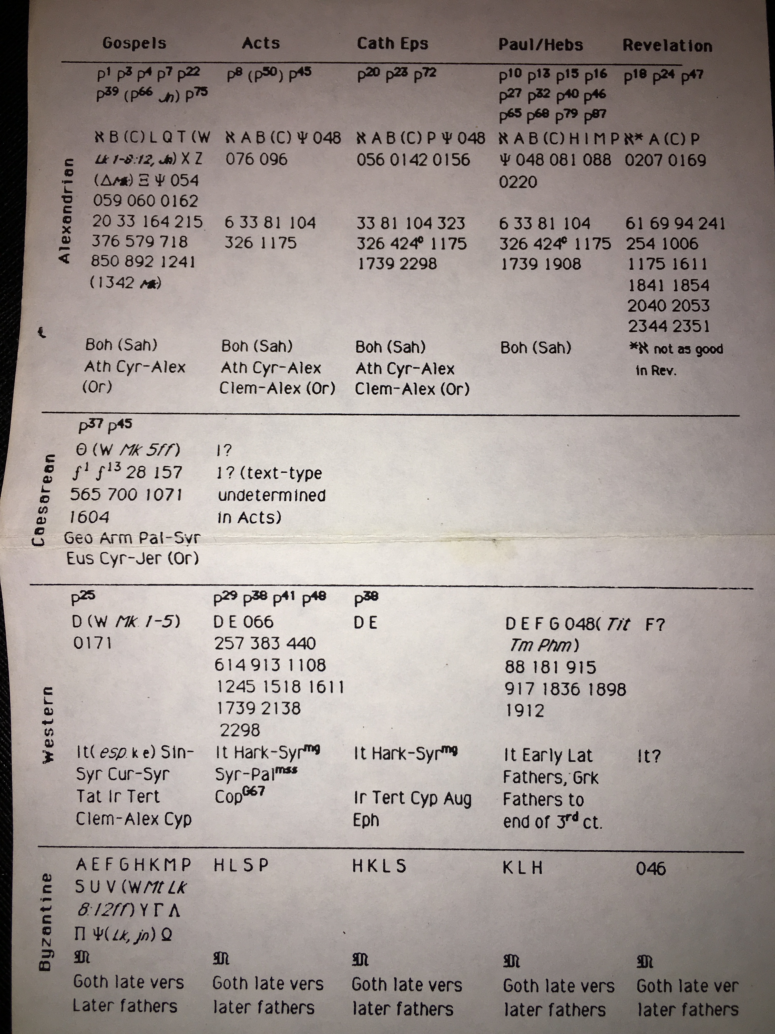 - The Alexandrian text-type. These manuscripts center in Alexandria, Egypt. They are the product of highly trained scribes associated with the library and schools there.
