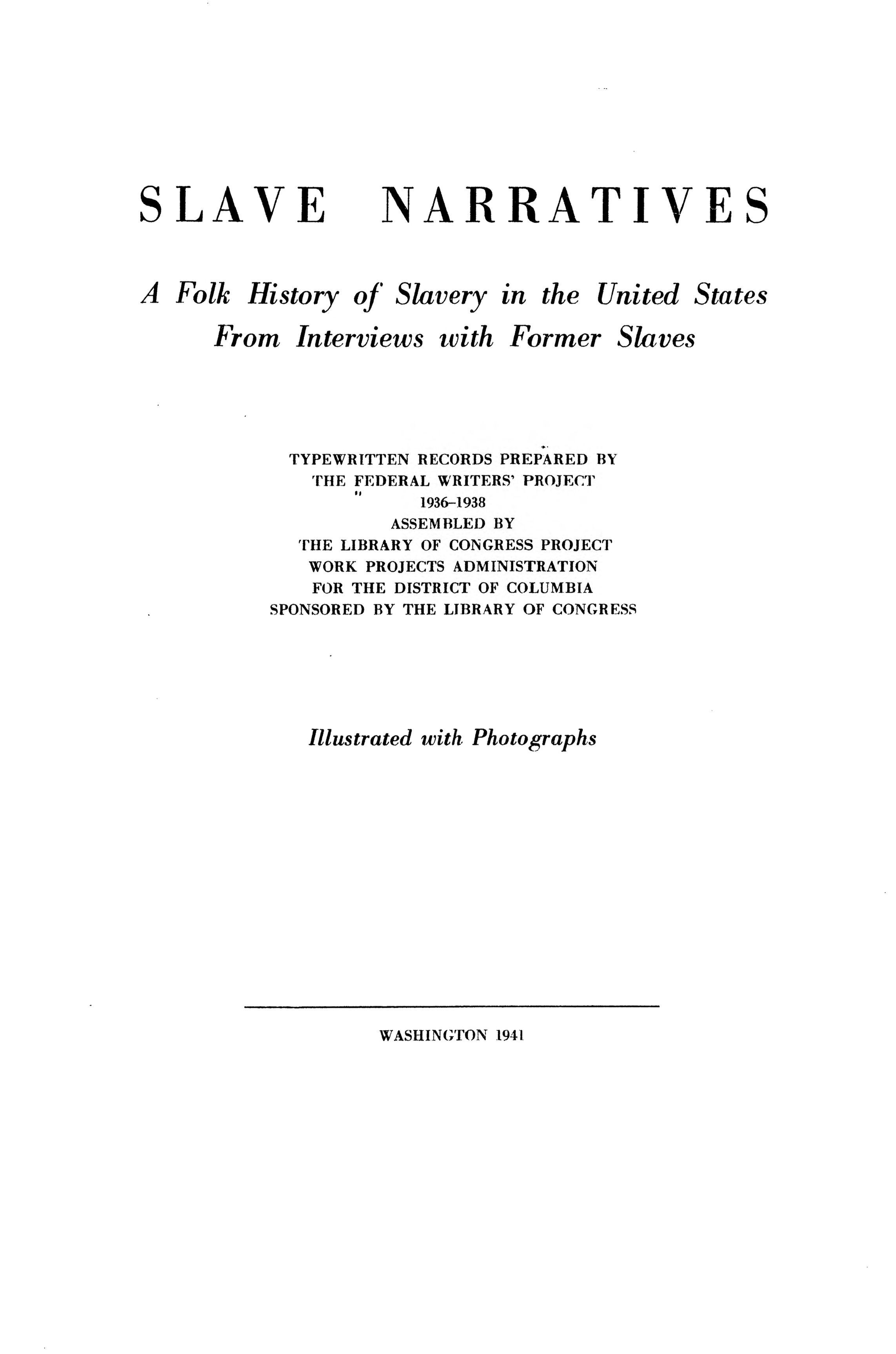 SLAVE NARRATIVESA Folk History of Slavery in the United States