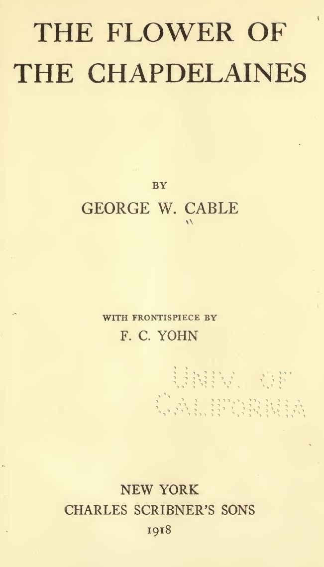 Cable, George Washington. The Flower of the Chapdelines. New York: Scribner's Sons, 1918. Internet Archive. Web. <https:// archive.org/ details/ theflowerofthe 00cablrich> .