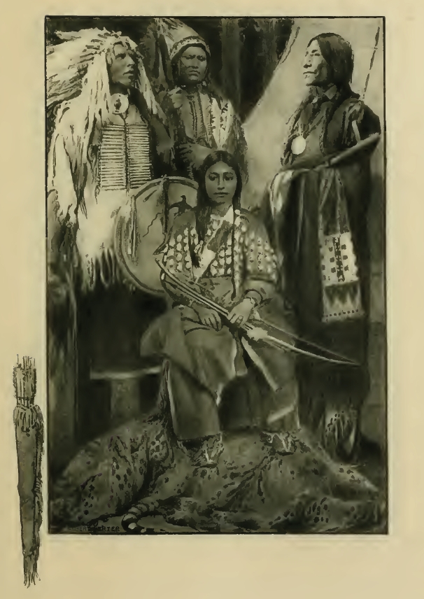 behind in the fawn-skin leggings and shirt of bird's