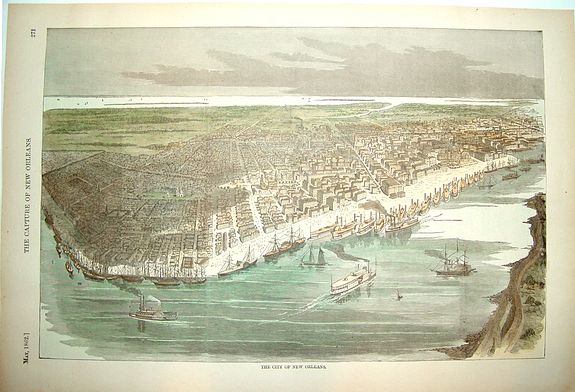 Protestant church in New Orleans. The minister was probably the Rt. Rev. Leonidas Polk, a rabid secessionist who left the pulpit to serve in the Confederate army as the "Fighting Bishop." Despite his zeal, he war regarded as a poor general.