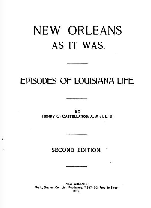 Castellanos, Henry C. New Orleans as It Was. Episodes of Louisiana Life. New Orleans: Graham & Son, Printers, 1895. Internet Archive. Web. 23 Feb. 2016. <https:// archive.org/ details/ neworleansas itwa00cast>.