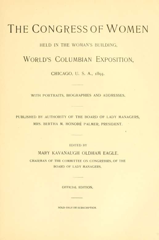 Cole, Catharine. "Come South, Young Woman." The Congress of Women Held in the Woman's Building, World's Columbian Exposition. Ed. Mary Kavanaugh Oldham Eagle. Chicago: Monarch Book, 1894. 776-781. Internet Archive. 13 Sept. 2009. Web. 21 Sept. 2012. <http:// archive. org/ details/ congress of womenh00 worl>.