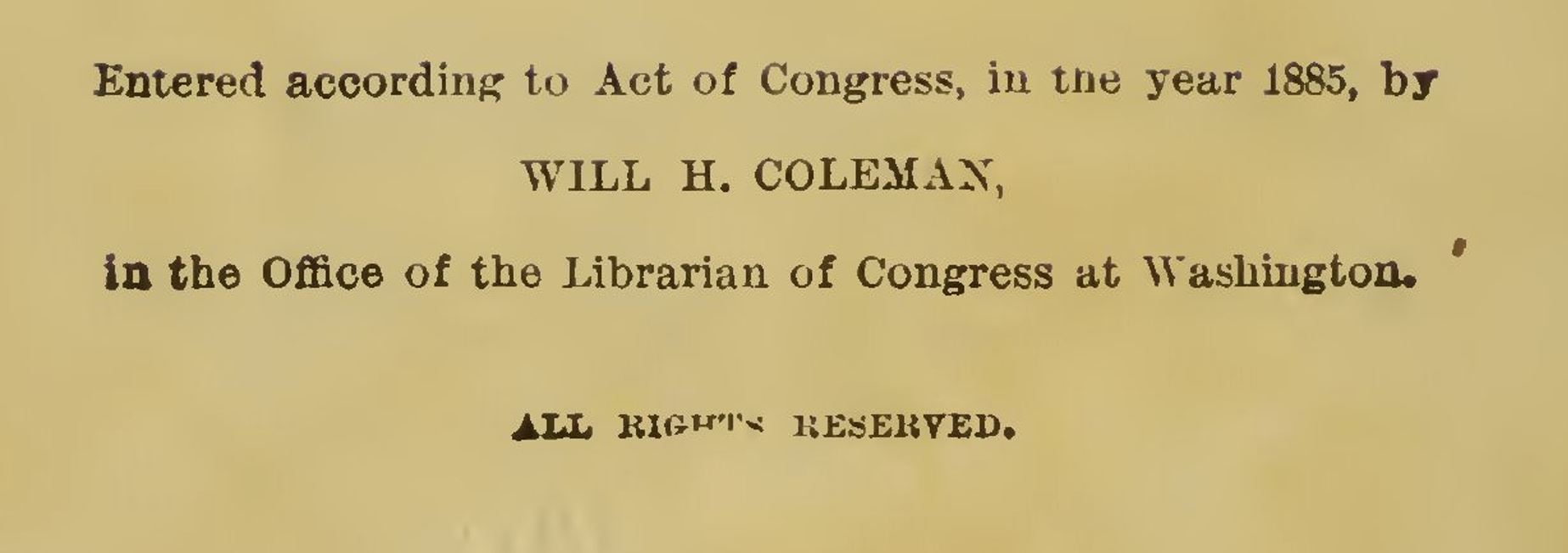 Coleman, William Head. Historical Sketch Book and Guide to New Orleans and Environs, with Map. Illustrated with Many Original Engravings; and Containing Exhaustive Accounts of the Traditions, Historical Legends, and Remarkable Localities of the Creole City. New York: Will H. Coleman, 1885,