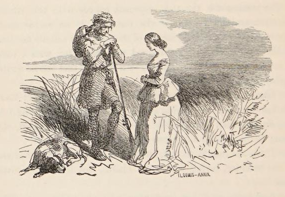 “Harkee, old trapper,” said Paul, clearing his throat with a desperate effort, as if determined to give his voice a clear exit; “I have just one bargain to make, since you talk of trading, which is neither more or less than this. I offer you, as my side of the business, one half of my shanty, nor do I much care if it be the biggest half; the sweetest and the purest honey that can be made of the wild locust; always enough to eat, with now and then a mouthful of venison, or, for that matter, a morsel of buffaloe’s hump, seeing that I intend to push my acquaintance with the animal, and as good and as tidy cooking as can come from the hands of one like Ellen Wade, here, who will shortly be Nelly somebody-else, and altogether such general treatment as a decent man might be supposed to pay to his best friend, or for that matter, to his own father; in return for the same, you ar’ to give us at odd moments some of your ancient traditions, perhaps a little wholesome advice on occasions, in small quantities at a time, and as much of your agreeable company as you please.”