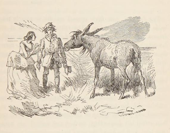 In the autumn of the year, that succeeded the season, in which the preceding events occurred, the young man, still in the military service, found himself on the waters of the Missouri, at a point not far remote from the Pawnee towns. Released from any immediate calls of duty, and strongly urged to the measure by Paul, who was in his company, he determined to take horse, and cross the country to visit the partisan, and to enquire into the fate of his friend the trapper. As his train was suited to his functions and rank, the journey was effected, with the privations and hardships that are the accompaniments of all travelling in a wild, but without any of those dangers and alarms that marked his former passage through the same regions. When within a proper distance, he despatched an Indian runner, belonging to a friendly tribe, to announce the approach of himself and party, continuing his route at a deliberate pace, in order that the intelligence might, as was customary, precede his arrival. To the surprise of the travellers their message was unanswered. Hour succeeded hour, and mile after mile was passed, without bringing either the signs of an honourable reception, or the more simple assurances of a friendly welcome. At length the cavalcade, at whose head rode Middleton and Paul, descended from the elevated plain, on which they had long been journeying, to a luxuriant bottom, that brought them to the level of the village of the Loups. The sun was beginning to fall, and a sheet of golden light was spread over the placid plain, lending to its even surface those glorious tints and hues, that, the human imagination is apt to conceive, forms the embellishment of still more imposing scenes. The verdure of the year yet remained, and herds of horses and mules were grazing peacefully in the vast natural pasture, under the keeping of vigilant Pawnee boys. Paul pointed out among them, the well-known form of Asinus, sleek, fat, and luxuriating in the fulness of content, as he stood with reclining ears and closed eye-lids, seemingly musing on the exquisite nature of his present indolent enjoyment.