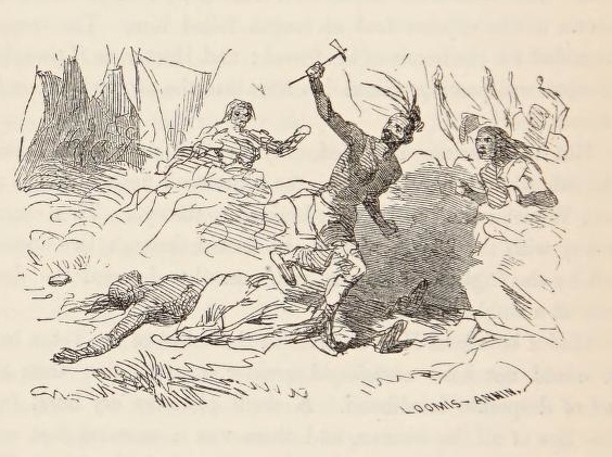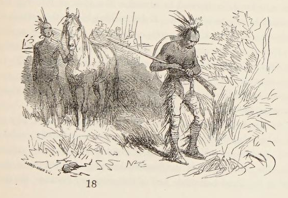 The dress of this individual was a mixture of the coarsest vestments of a husbandman with the leathern garments, that fashion as well as use, had in some degree rendered necessary to one engaged in his present pursuits. There was, however, a singular and wild display of prodigal and ill judged ornaments, blended with his motley attire. In place of the usual deer-skin belt, he wore around his body a tarnished silken sash of the most gaudy colours; the buck-horn haft of his knife was profusely decorated with plates of silver; the marten’s fur of his cap was of a fineness and shadowing that a queen might covet; the buttons of his rude and soiled blanket-coat were of the glittering coinage of Mexico; the stock of his rifle was of beautiful mahogany, riveted and banded with the same precious metal, and the trinkets of no less than three worthless watches dangled from different parts of his person. In addition to the pack and the rifle which were slung at his back, together with the well filled, and carefully guarded pouch and horn, he had carelessly cast a keen and bright wood-axe across his shoulder, sustaining the weight of the whole with as much apparent ease, as if he moved, unfettered in limb, and free from incumbrance.