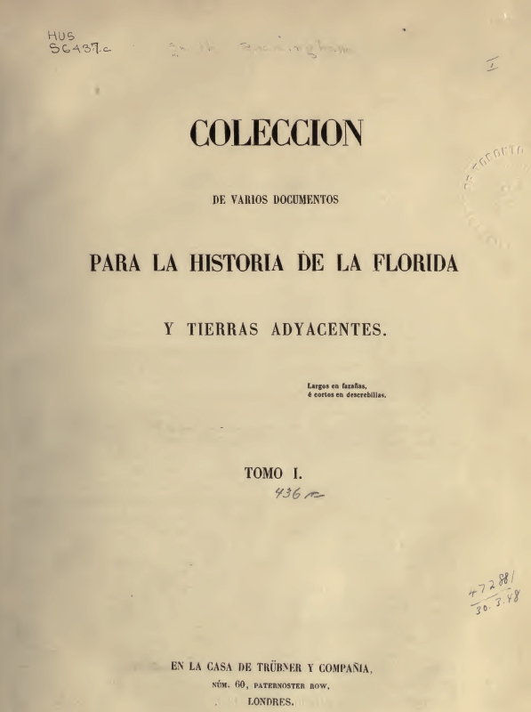 De Biedma, Luis Hernandez. "Relacion Del Suceso De La Jornada Que Hizo Hernando De Soto, Y De La Calidad De La Tierra Por Donde Anduvo." Coleccion De Varios Documentos Para La Historia De La Florida Y Tierras Adyacentes. Ed. Buckingham Smith. Vol. I. Madrid: Trubner, 1857. 47-64. Internet Archive. Archive.org, 9 Feb. 2009. Web. 09 Nov. 2012. <http:// archive. org/ details/ coleccin devari01 smituoft>.