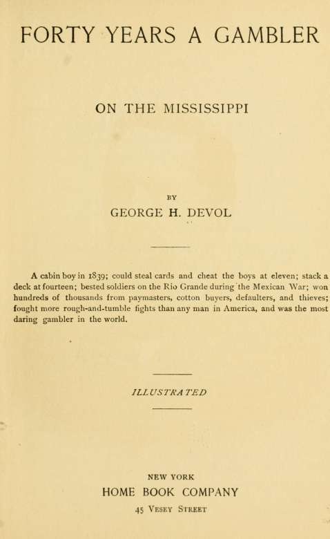 Devol, George H. Forty Years a Gambler on the Mississippi. New York: Home Book, 1887.