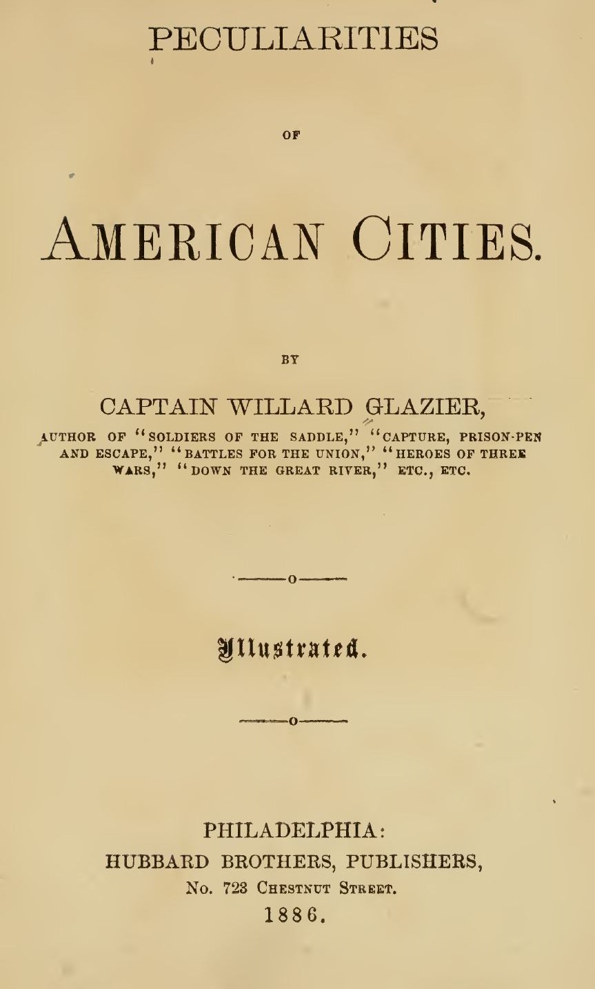 Glazier, Willard. “Peculiarities of New Orleans.” Peculiarities of American Cities. Philadelphia: Hubbard Brothers, 1886. 264-280. Archive.org. Internet Archive, 19 May 2009. Web. 10 May 2018. <https:// archive.org/ details/ peculiarities ofa01glaz>.