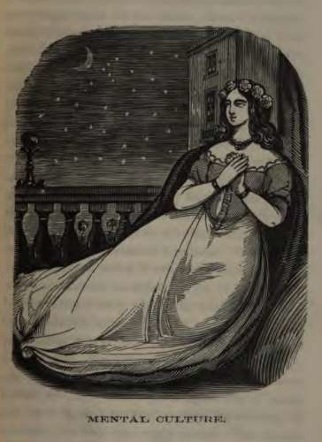 Mothers frequently fall into the opposite extreme, and advise their daughters to very late marriages, under the false assumption that with domestic life all real happiness ends, and that the troubles and cares incident upon such a condition greatly outweighs the pleasures of married life. This arises from the want of a proper appreciation of true happiness, for what are the distant wooings of a polished gallant to the tender caresses of a loving husband? what are the stereotyped flatteries of a known flirt to the sincere outpourings of a manly soul, or what are the doubtful smiles of a beautiful belle to the hearty welcome of a devoted wife? All other pleasures stand subservient to matrimonial bliss. The highest, the worthiest and the noblest gift of God, is virtuous woman! By daily associations and commingling of mutual interests, by uniting heart to heart, and mind to mind, ten thousand pleasures arise unfelt by the icy heart of one whose soul never warmed into extatic rapture, or glowed in the sunshine of connubial love. Mothers who entertain unfavorable opinions of married life must either have flirted themselves out of confidence with the opposite sex when girls, and at last have been forced to take a third choice, or they must have married too early by following the dictates of passion, to select a suitable companion; and after the first impulse of nature subsided were left heart-broken and disgusted with their own folly.