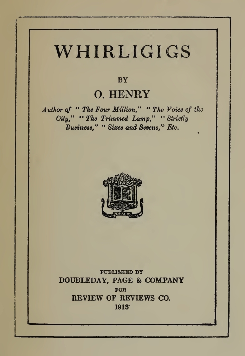 Henry, O. "Blind Man's Holiday." Whirligigs. New York: Doubleday, Page & Co., 1913. 259-287. Archive.org. 19 Jan. 2012. Web. 31 Oct. 2012. <http:// archive.org/ details/ whirligigs 00henr>.