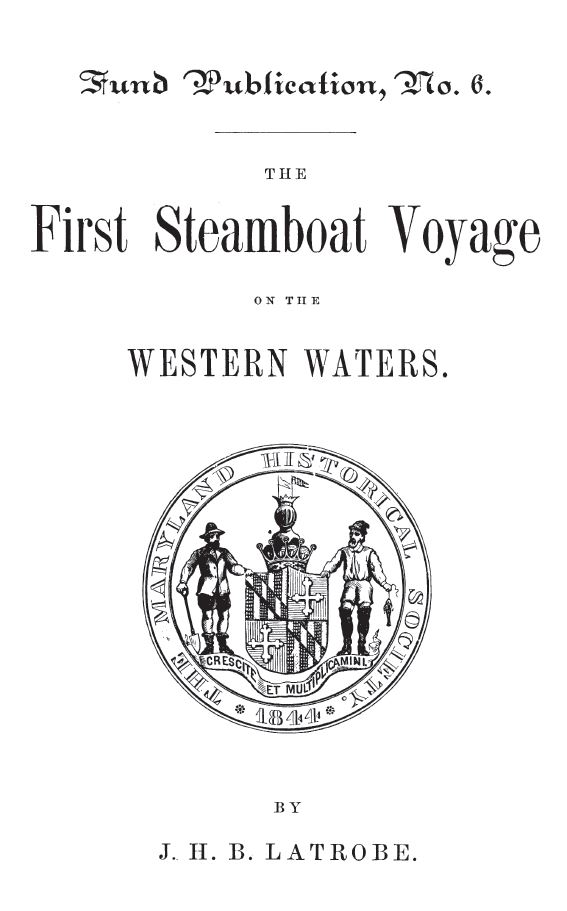 Latrobe, John H. B. The First Steamboat Voyage on the Western Waters. Baltimore: Maryland Historical Society, 1871. Fund Publication, No. 6. Internet Archive. 17 Feb. 2006. Web. 26 Nov. 2016. <https:// archive.org/ details/ firststeamboat v00latrgoog>.