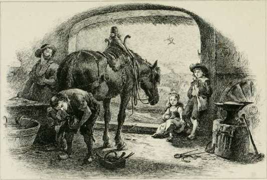 On voit, de place en place, un paysan rustique.