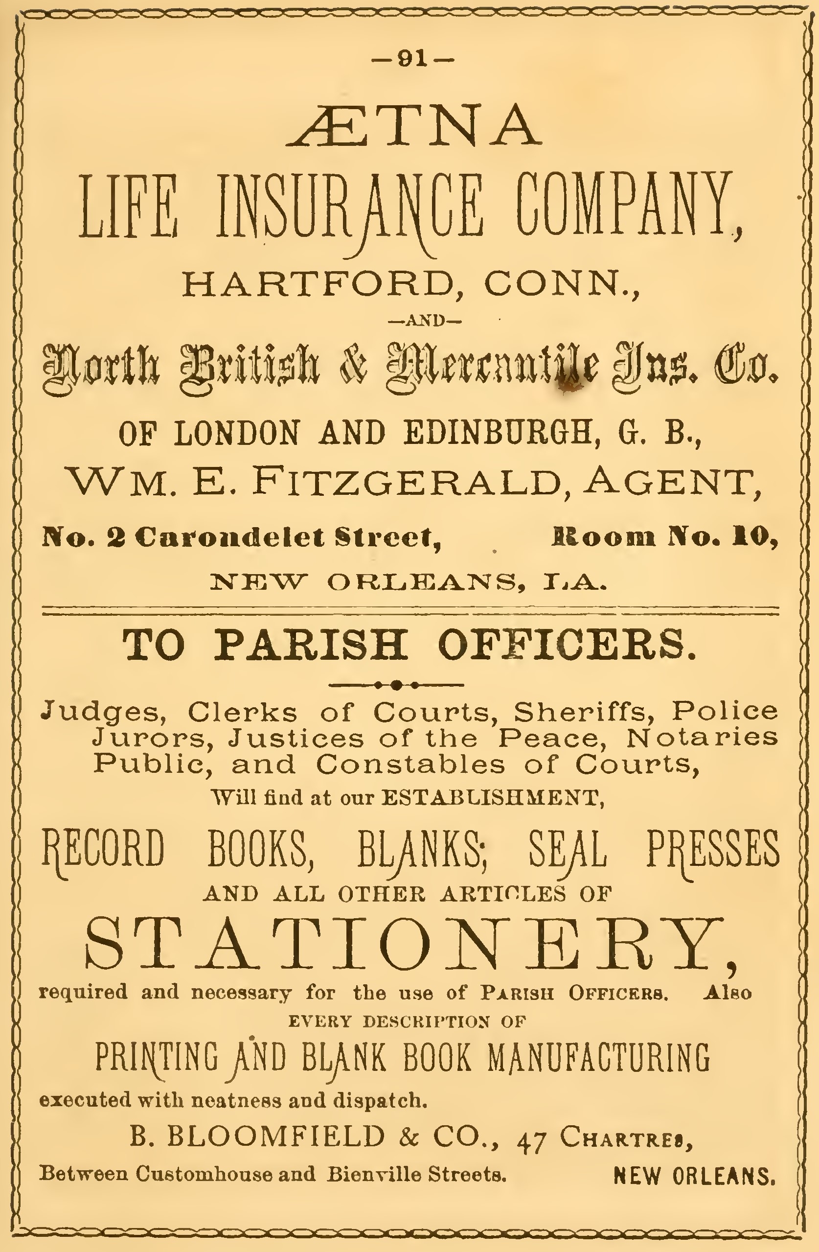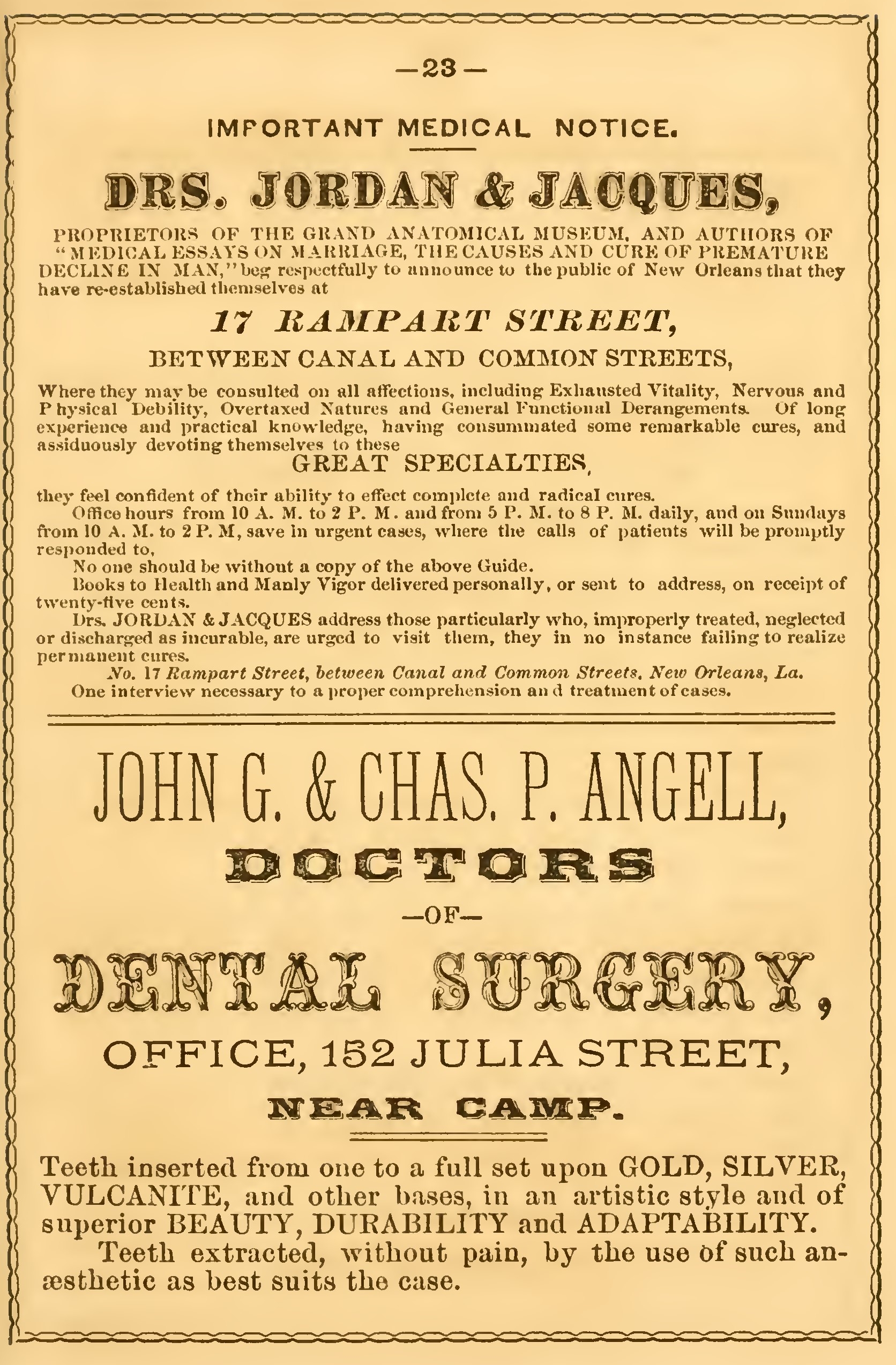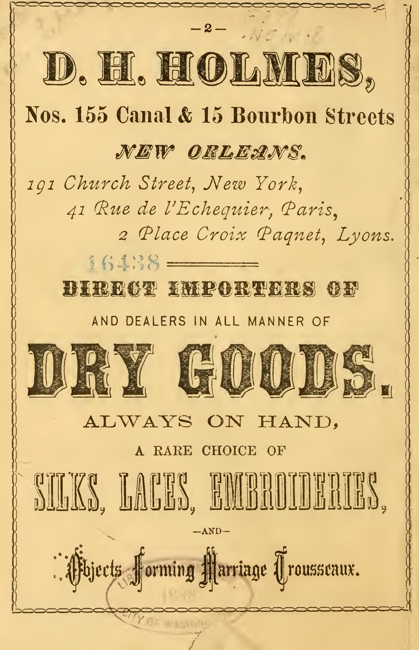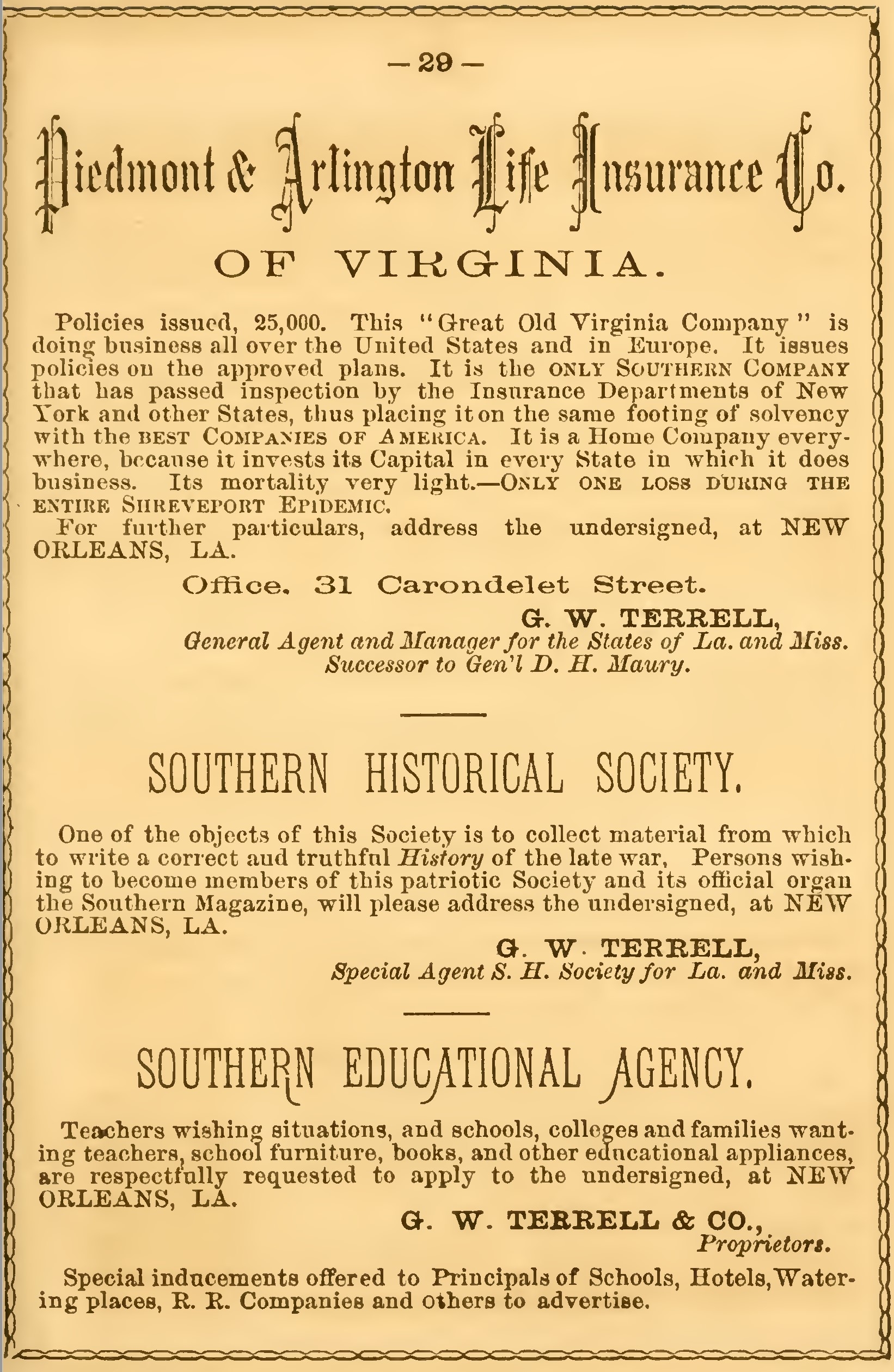 Address Box 703, New Orleans Post-Office.