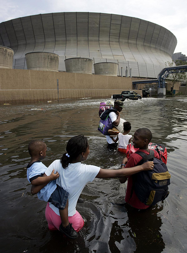 The black writers in today's reading also express anger over the racism that made Katrina so much more difficult for their community. Algiers police prevented black people from evacuating New Orleans across the GNO bridge. Other police killed black citizens. In a reprise of historic white violence, white vigilantes roamed the city gunning down down black people with impunity. And while city, state, and federal governments collapsed for days in their lack of response to the hurricane, the only institution keeping people alive at the Super Dome were local gangs. And the national media duly reported that black people were behaving like animals. The Bush administration bulldozed undamaged public housing to prevent black families from returning while openly talking about making the city whiter. And of course, every teacher in the parish was fired, most of them black.