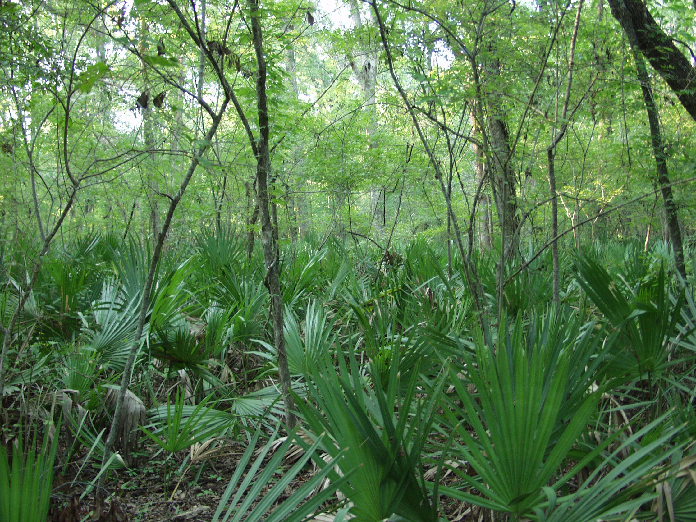 Palmettoes. Generally low-growing palm trees having fan-shaped leaves.