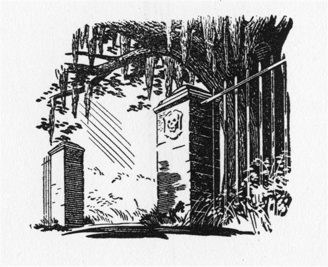 Two gray stone posts, as firmly planted by time as the avenue of live-oaks they headed, showed clearly in the afternoon light. And from the nearest, deep carven in the stone, a jagged-toothed skull, crowned and grinning, stared blankly at the three in the shabby car. Beneath it ran the insolent motto of an ancient and disreputable clan, “What I want — I take!”
