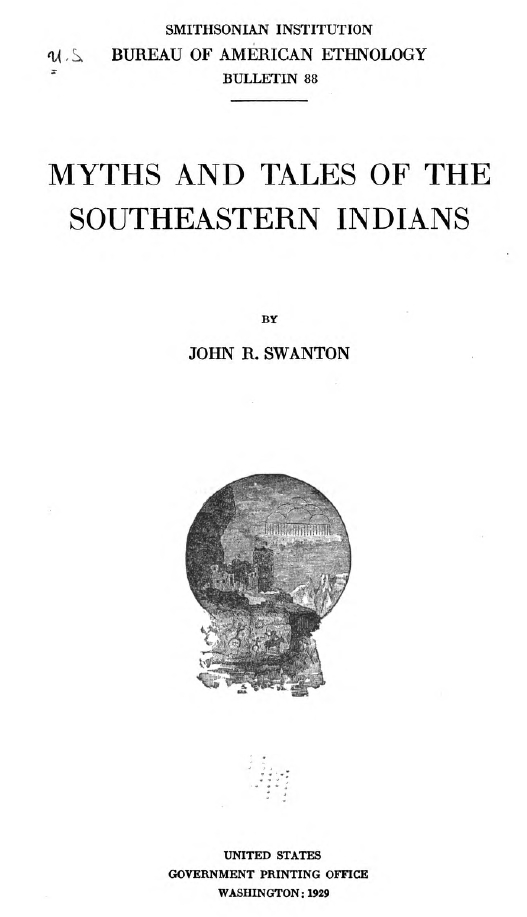 Swanton, John R. Myths and Tales of the Southeastern Indians. Washington, D.C.: Government Publishing Office, 1929. Smithsonian Institution: Bureau of American Ethnology