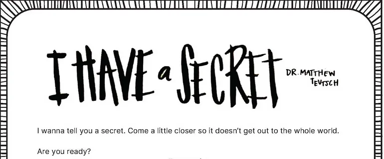 Teutsch, Matthew. “I Have a Secret.” 10 July 2024. Medium. 22 July 2024. <https:// interminable rambling. medium.com/ i-have-a-secret-bc7638a0d45d> © Matthew Teutsch. Used by permission. All rights reserved.